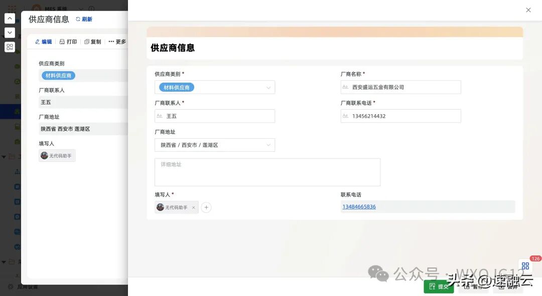线上录入和管理设备供应商、材料供应商信息,可在同一平台管理该供应商信息,支持文本、纸质、附件等资料,无需分散在多平台管理;供应商信息表单可关联采购申请表单,实现快速提交采购申请,无需手动重复填写。