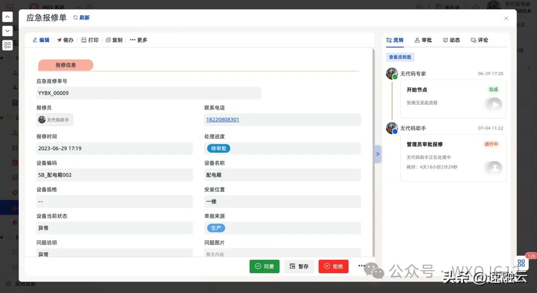 全流程覆盖设备全生命周期,包括设备台账、设备巡检、设备维修、设备保养、应急保修等,极大提高设备利用率,延长设备使用生命周期,告别手动低效管理纸质设备巡检、维修信息。