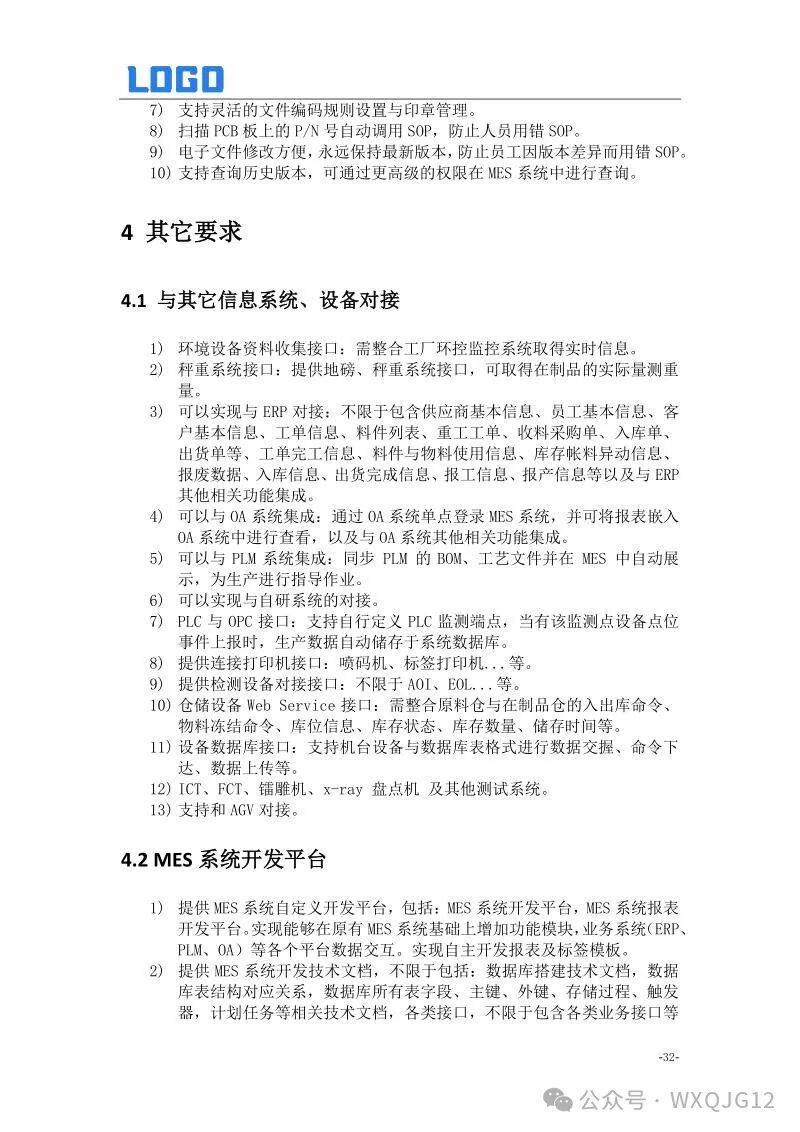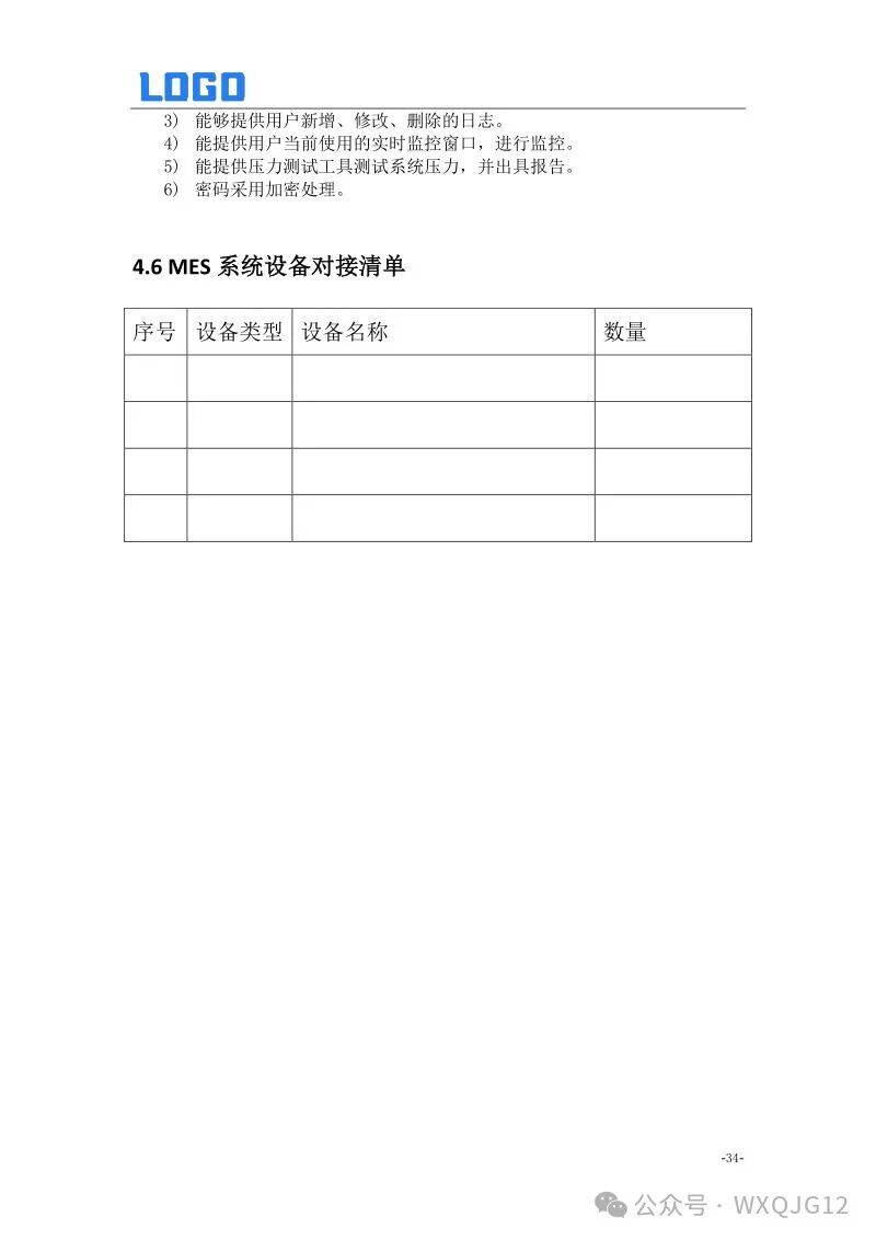 4.6 MES系统设备对接清单