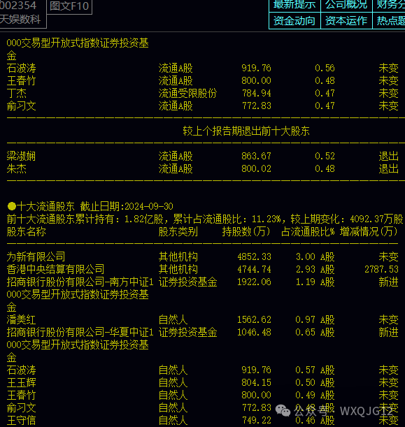 **,从十大流通股东来看,此股持股百分之5以上大股东人数为0,也就是说十大流通股东在高位减持卖出清仓股票也不需要公告,这就是高位这几天高换手不涨的重要原因,百分之90可能性是主力和十大流通股东已经全部高位清仓甩给散户接盘了,所以,后市天娱数科基本上会走缩量跌停板的走势。这个大家千万得小心,小心周一缩量跌停板形成,有可能散户形成最后一批站在孤岛上站岗过年。这个大家可以参考利欧股份,利欧股份也是十大流通股东没有一个持股超过百分之5以上大股东,也是全部高位清仓后连续跌停板收盘。
