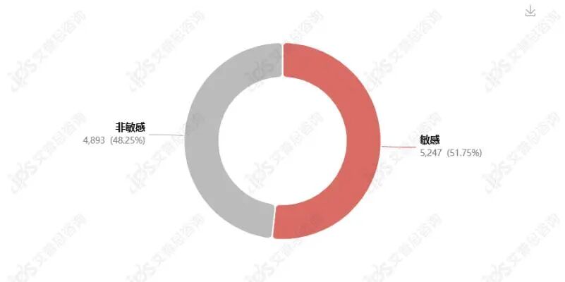 “黄子韬朵薇卫生巾现异物”事件信息以敏感为主,敏感信息占比51.75%,非敏感信息占比48.25%。