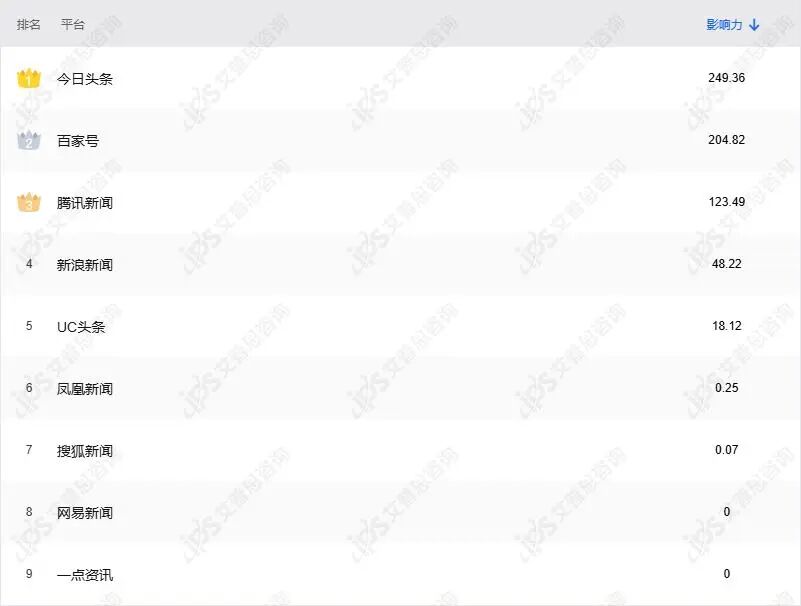 “罗马仕回应多所高校禁用其充电宝”事件中,今日头条综合影响力数值为249.36,****;排名第二平台为百家号,综合影响力数值204.82;排名第三平台为腾讯新闻,综合影响力数值123.49。