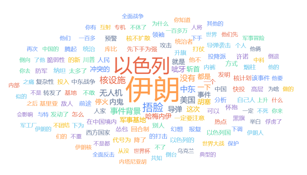 高频词包括:#以色列空袭伊朗 #中东局势 #伊朗核设施 #纳坦兹 #以色列伊朗战争 #全球经济 #原油价格 #停火协议 #高官遇难 #导弹互击 #信息差